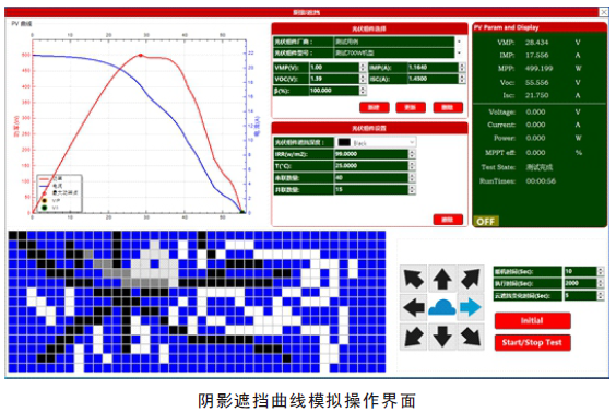 FT-SAS太阳能电池矩阵仿真软件可以在实验室的测试环境下,去直接模拟各种真实条件下的太阳能电池阵列,从而测试光伏逆变器的静态 & 动态最大功率点追踪效能。