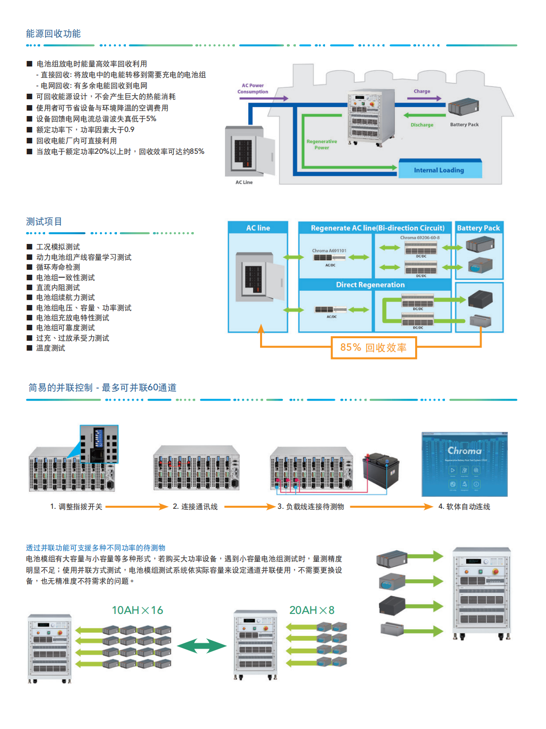 Chroma 17020系统是专门为二次电池组测试而开发的高精密设备,适合用于电池组续航力试验、产品进出货检验、设计验证研究、电池组生产线上容量学习(Learning)与测试等用途。
