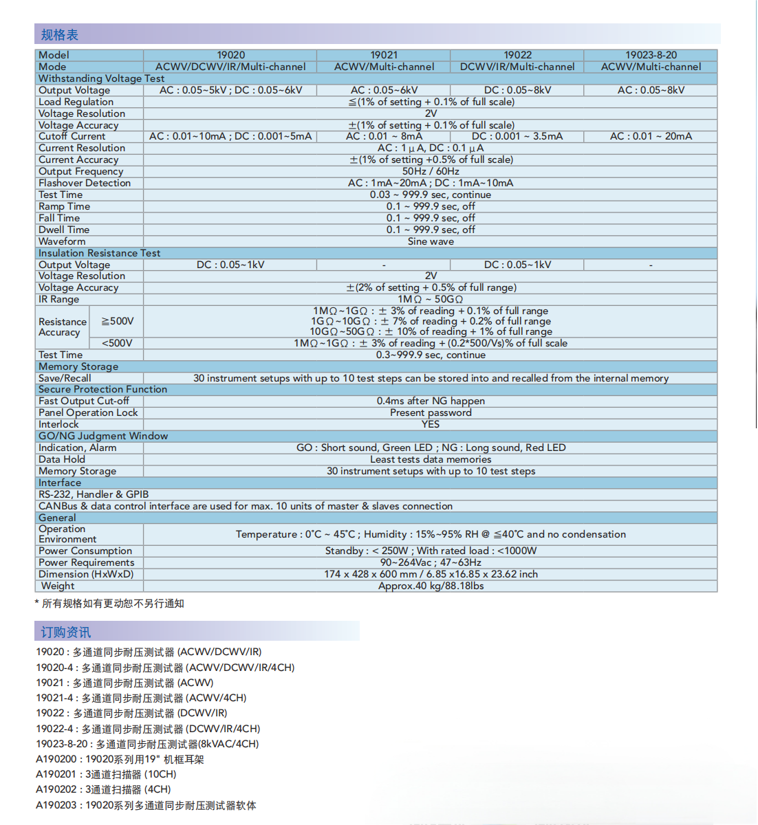 名  称:多通道同步耐压测试器MODEL19020系列